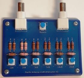 Our 41dB switched attenuator kit provides variable attenuation of input signals in steps of 1dB. Generate low level signals from sources including signal generators, oscillators and transmitters. Great for checking S meters and receiver sensitivity. Useful for hidden transmitter foxhunting to reduce received signal in controlled steps Handles 5W continuous and up to 10W for intermittent signals. Bidirectional, either end can be an input or output. Usable from DC to over 200MHz. Board size: 2.8 by 3.9 inches.
